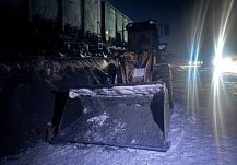 Мужчину зажало между ковшом трактора и грузовым вагоном.