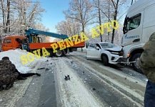 На улице Нейтральной в Пензе иномарка столкнулась с двумя грузовиками
