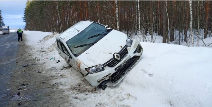 Сигнал об аварии на 15 км автодороги «Никольск – Городище» поступил на пульт дежурного в 16:48. Опрокинулся автомобиль Renault Logan II. На кадрах машина запечатлена висящей на сугробе.