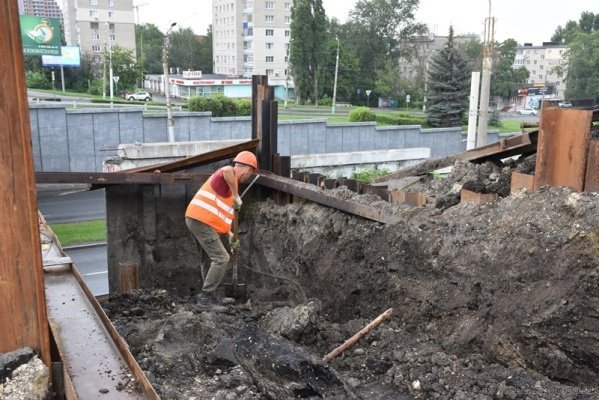 Старая плита демонтирована, аварийно-восстановительные мероприятия завершены. Рабочие приступили к сборке опалубки и усилению строительных конструкций с помощью армирующих элементов для повышения прочности сооружения. Затем будет залита подпорная плита.